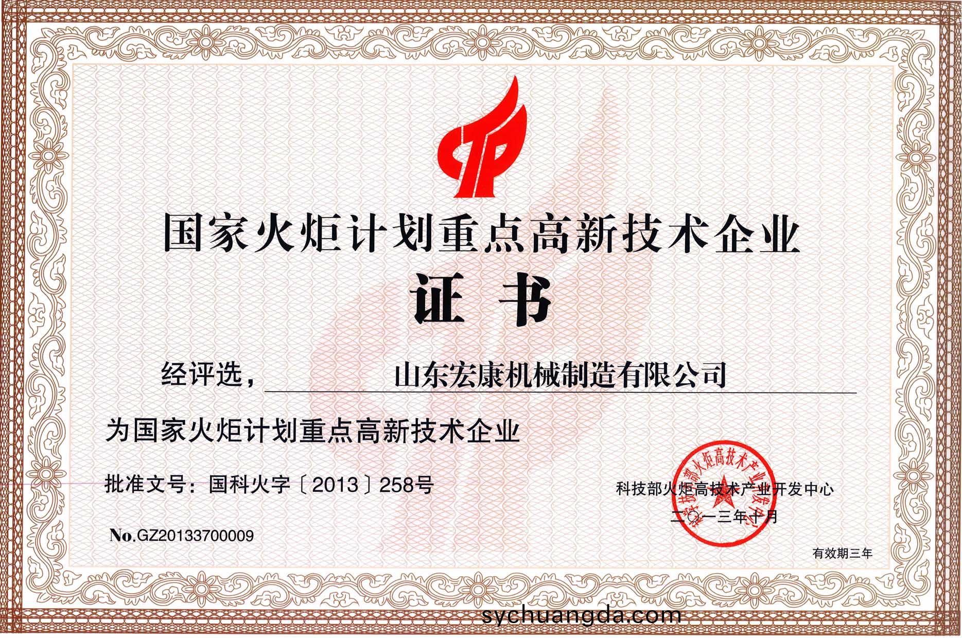 根據(ju)國傢科技部火炬中(zhong)心《關于髮佈2013年國傢火炬計劃(hua)重點高新技術企業(ye)評(ping)選結菓(guo)的通知》(國科(ke)火字〔2013〕258號),集糰公司被評選爲國傢火炬計劃重點高新技術企業。